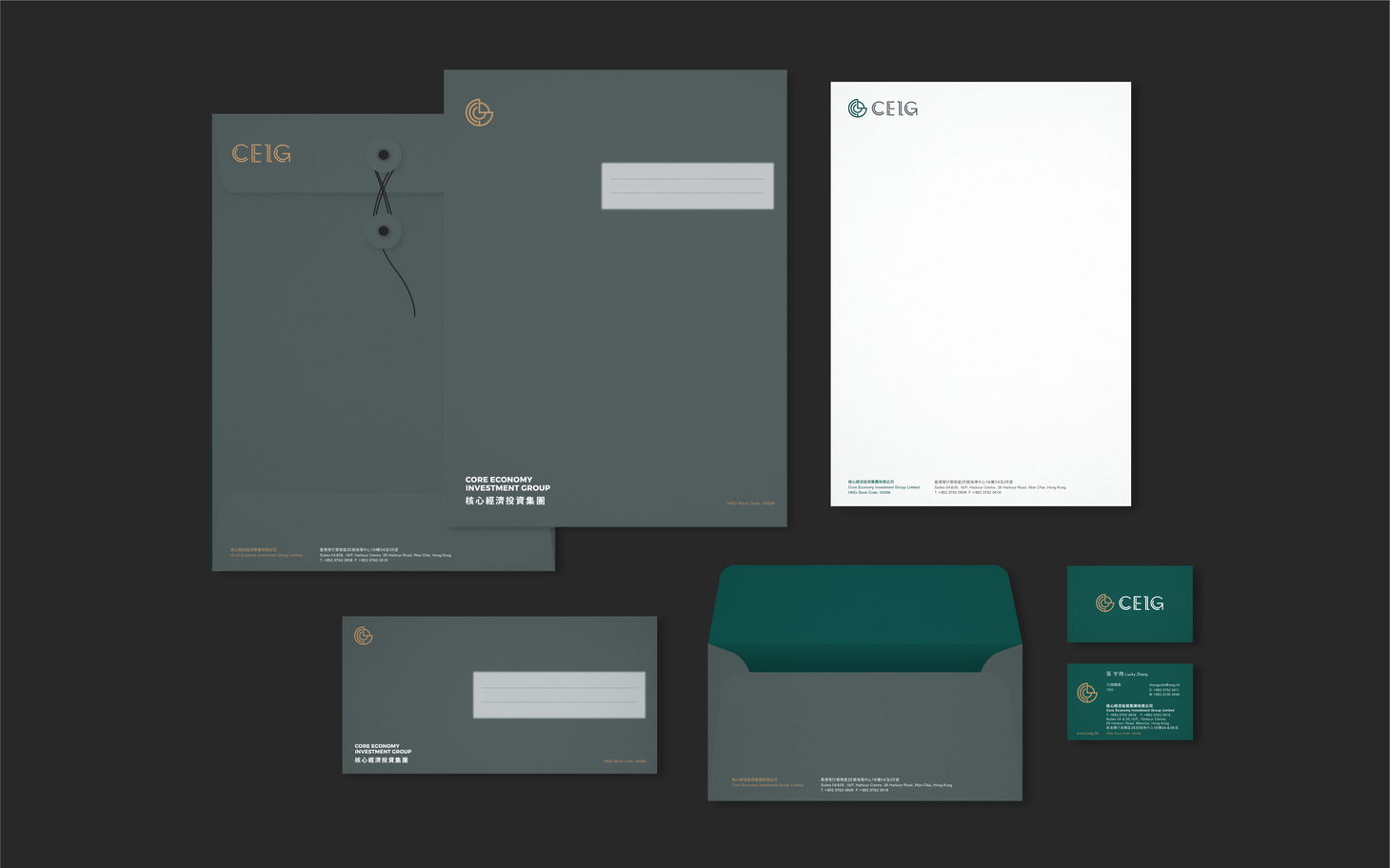 標誌巧妙融入 Considerate、Experienced、Ingenious、Genuine 四字縮寫,形成 CEIG 的精神結構。此組合象徵企業的理性專業與創意思辨,也寓意投資的核心源於經驗、洞察與誠信。