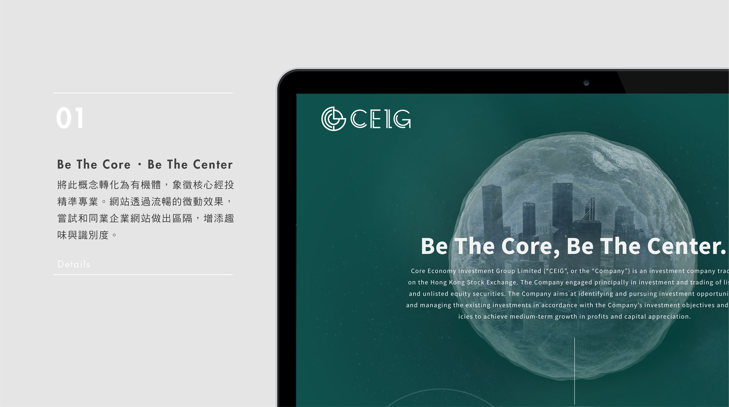 核心經濟投資 CEIG 相信投資並非僅由數字組成,而來自退一步思考的人性與判斷。囍樹以「以心為本,價值核心」為定位基石,為企業塑造更具情感連結與信任基調的品牌敘事。