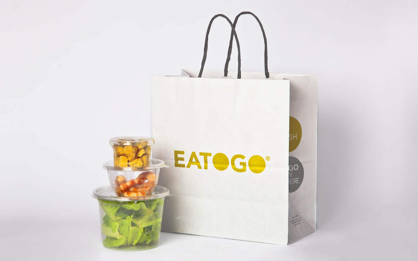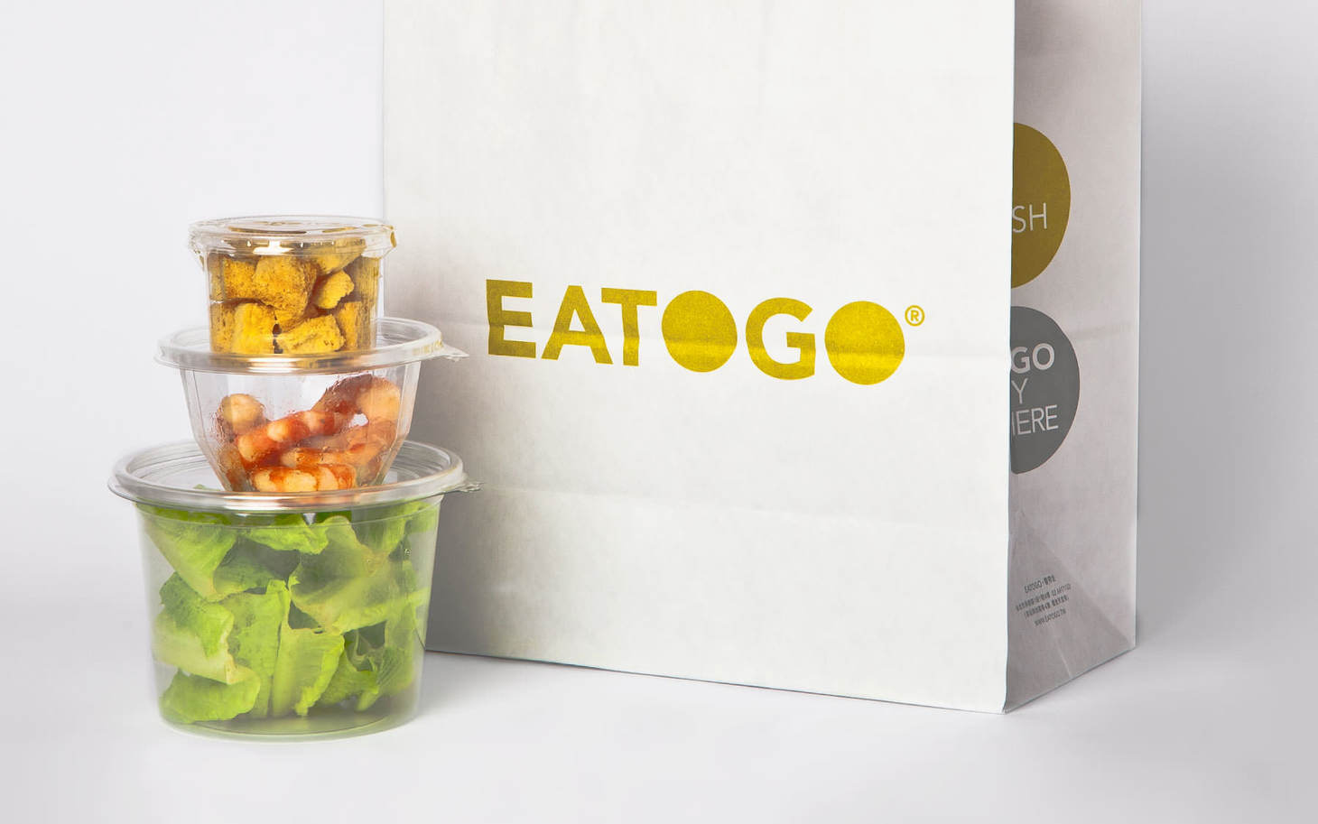 EATOGO 是饗賓餐旅旗下主張「外食也要健康」的外帶品牌,從命名到 slogan「饗帶走.新鮮帶著走」,都直接傳遞品牌的核心特色。