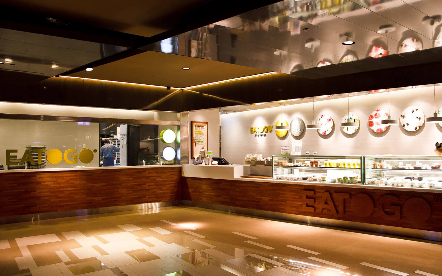 櫃位設計延續「輕、快、鮮」的品牌精神,採用透明、亮色與柔和的幾何線條,讓外帶料理能被一目瞭然地看到,也讓購買流程更直覺、友善。