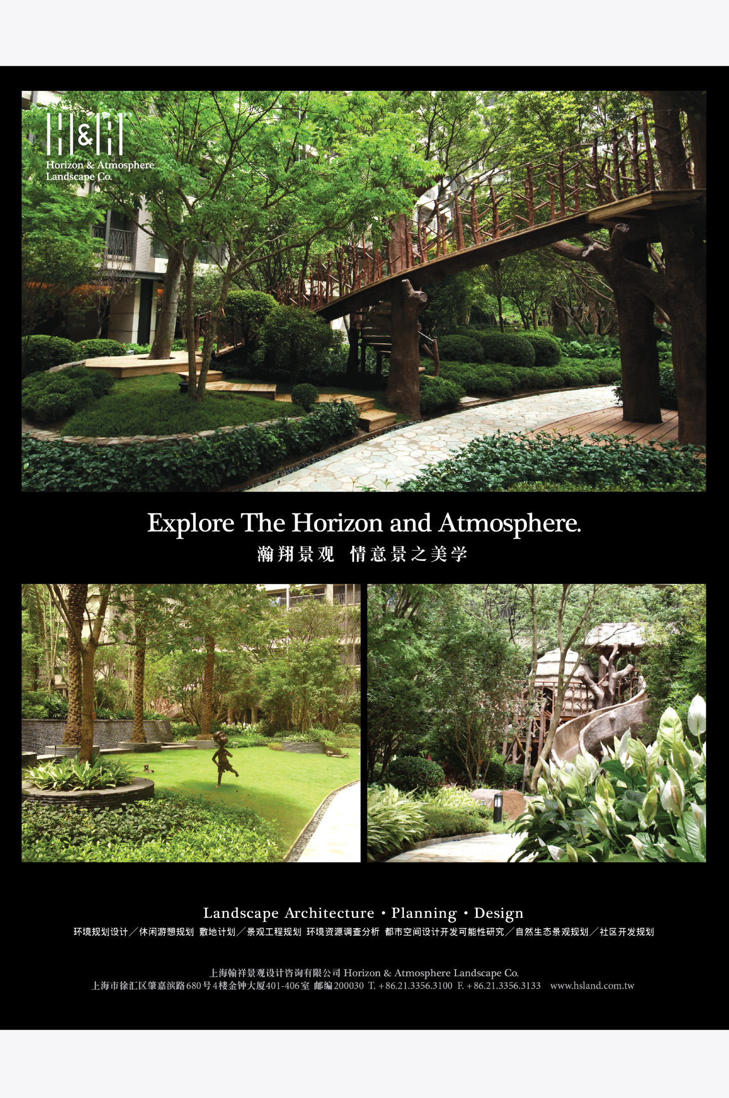 從 H&A Landscape 的英文命名出發,延伸出品牌的核心概念——Explore the Horizon and Atmosphere。這是一種跨越土地、天光、空氣的景觀態度,也是瀚翔對自然場域的理解與想像。