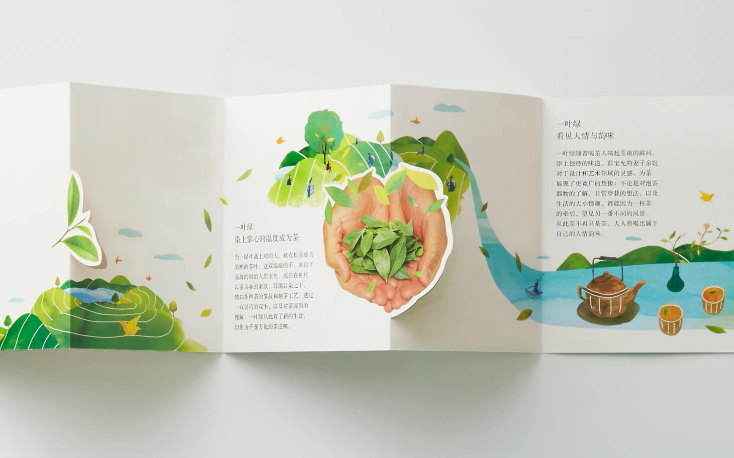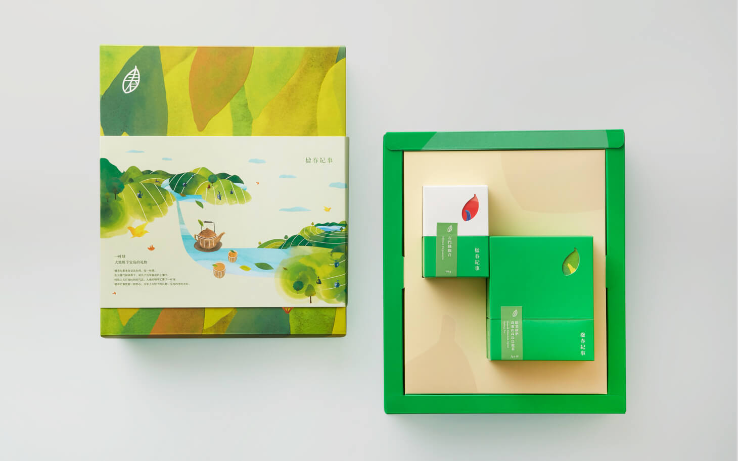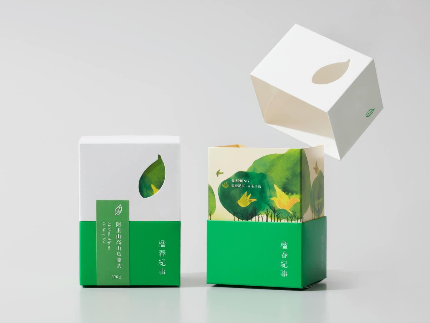 主色選用鮮綠,象徵萬物萌發的春天,也呼應茶葉本身的自然氣息。色彩既具生命力也具現代感,讓品牌在茶市場中形成鮮明的獨特性。