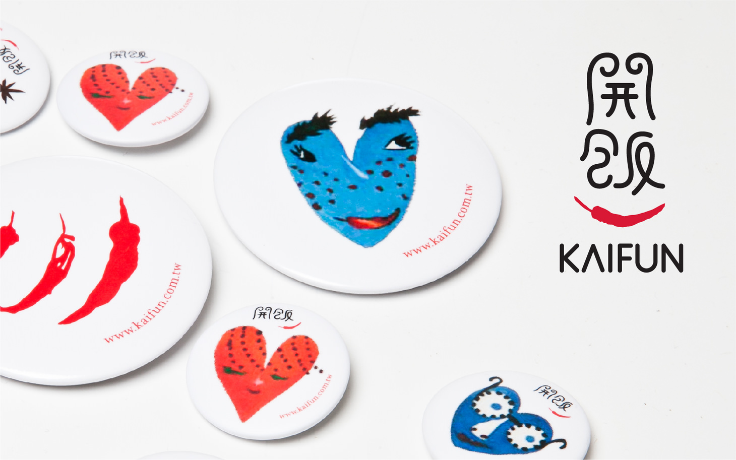 設計以川菜文化中最具代表性的花椒、辣椒、香料等元素,組成人臉造型,呈現吃辣時微燙、微麻、微陶醉的表情。這個主視覺讓品牌一眼就能被記住,也自然延伸成各式應用品的視覺語彙。