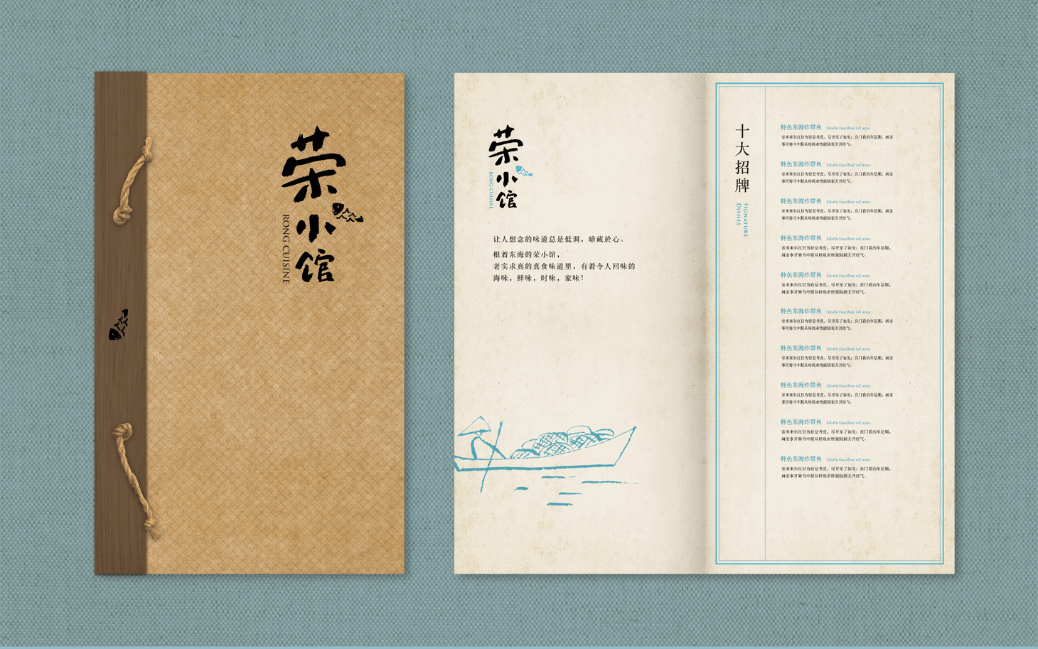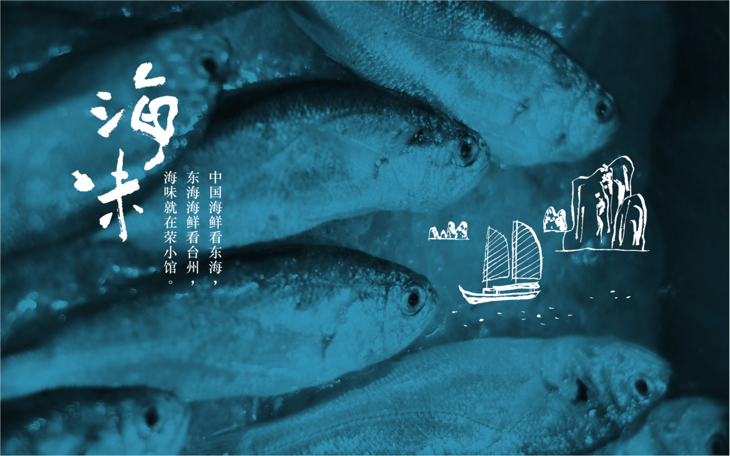 視覺語言採用帶有溫度與留白的寫意插畫,描繪東海的海線、船隻、漁港與日常料理。這些畫面成為品牌的故事入口,使榮小館在餐飲市場中具有鮮明且具情感性的辨識度。
