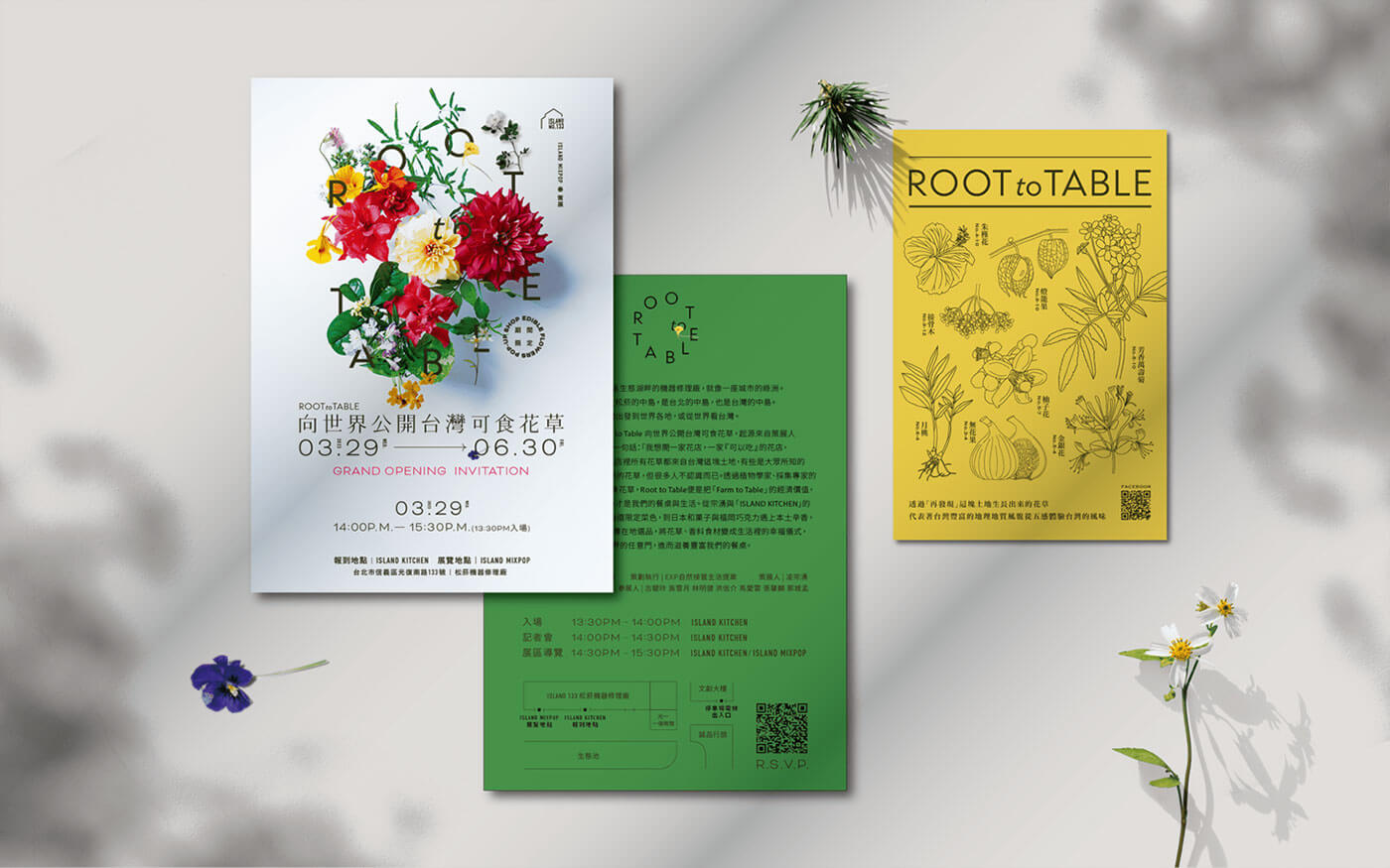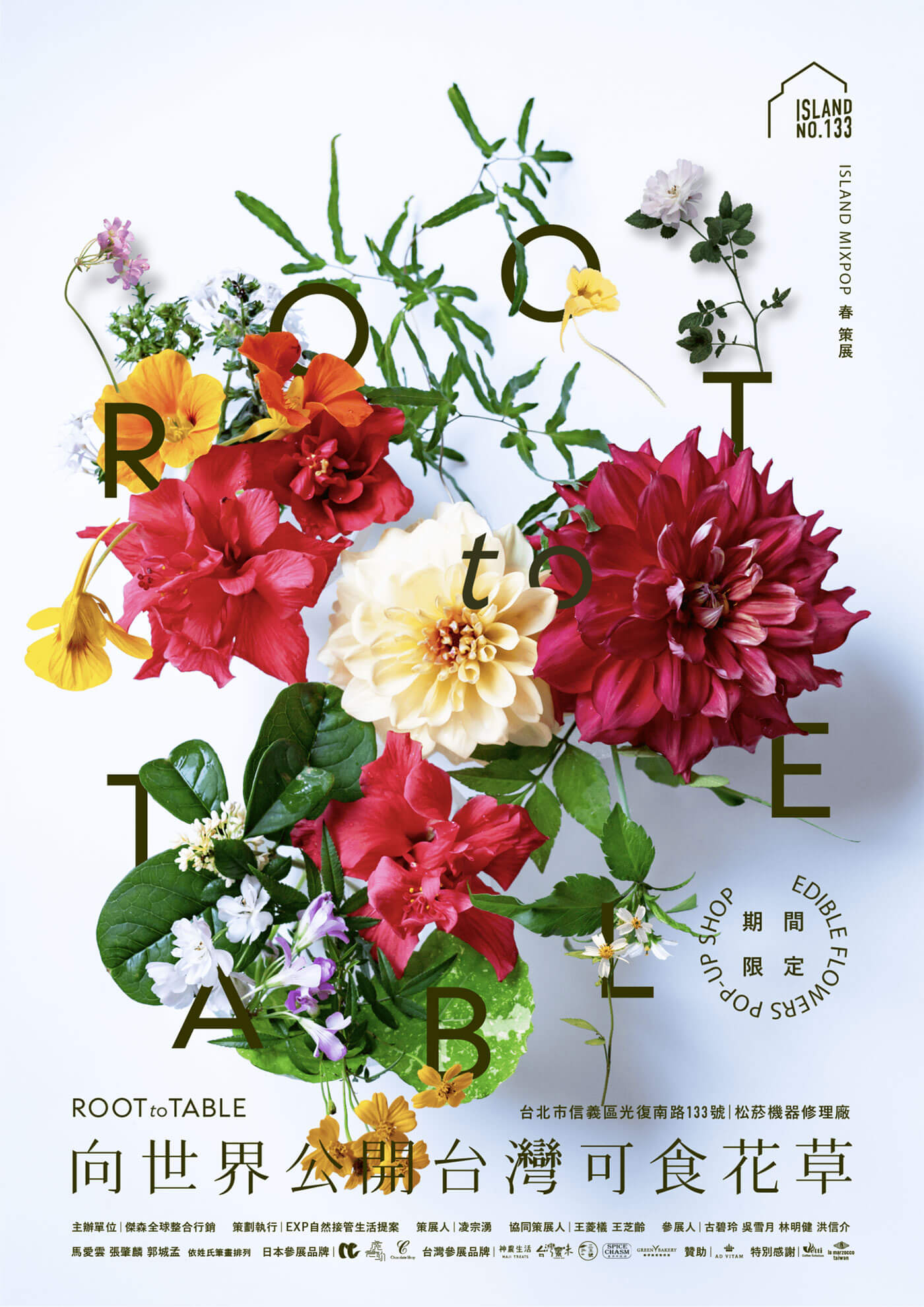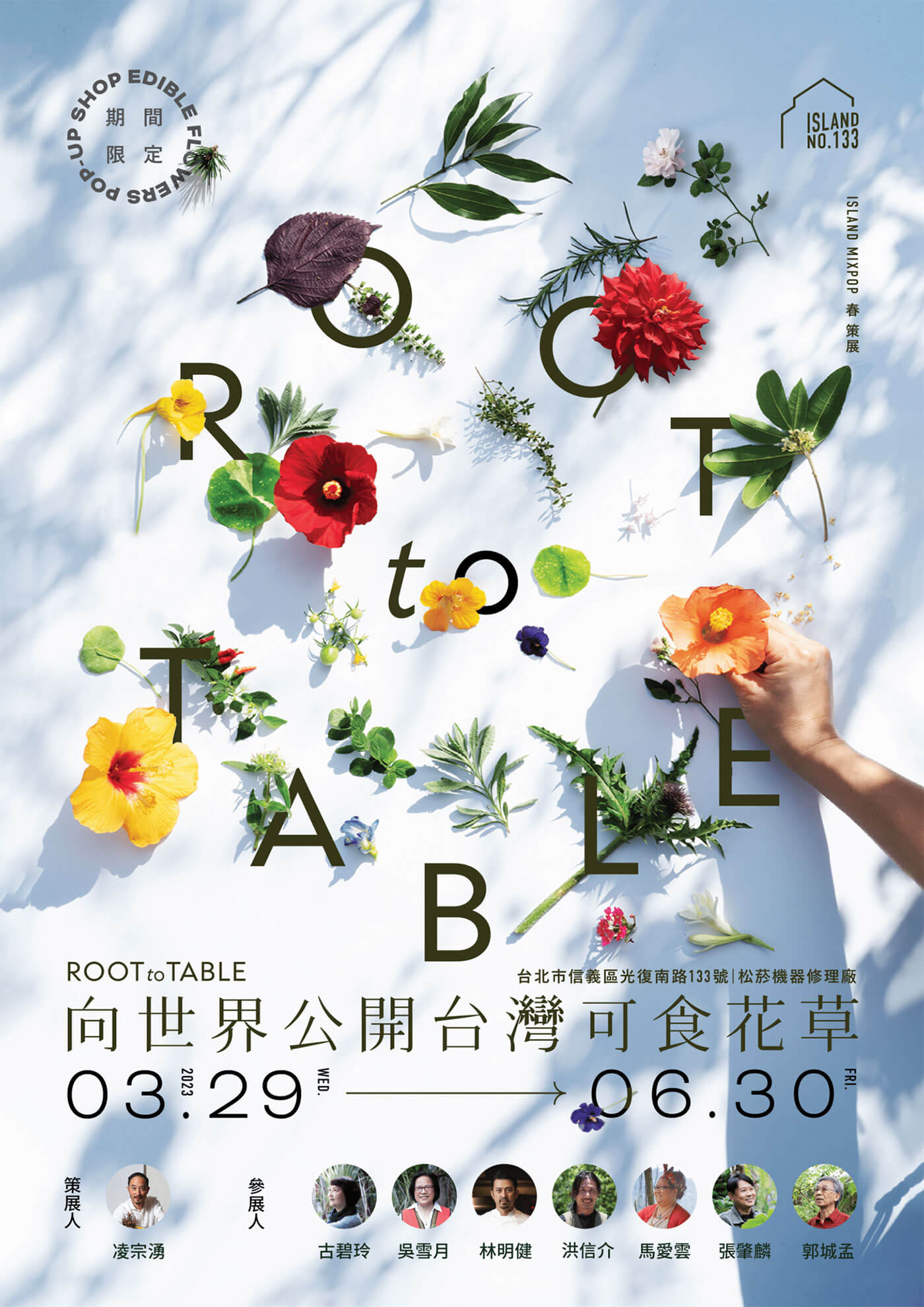 ROOT TO TABLE 為 Island133 的首檔策展,由凌宗湧擔任主策展人,囍樹(CIZOO)負責將「可以吃的花店」的策展核心轉化為展覽的視覺語彙與敘事結構。
