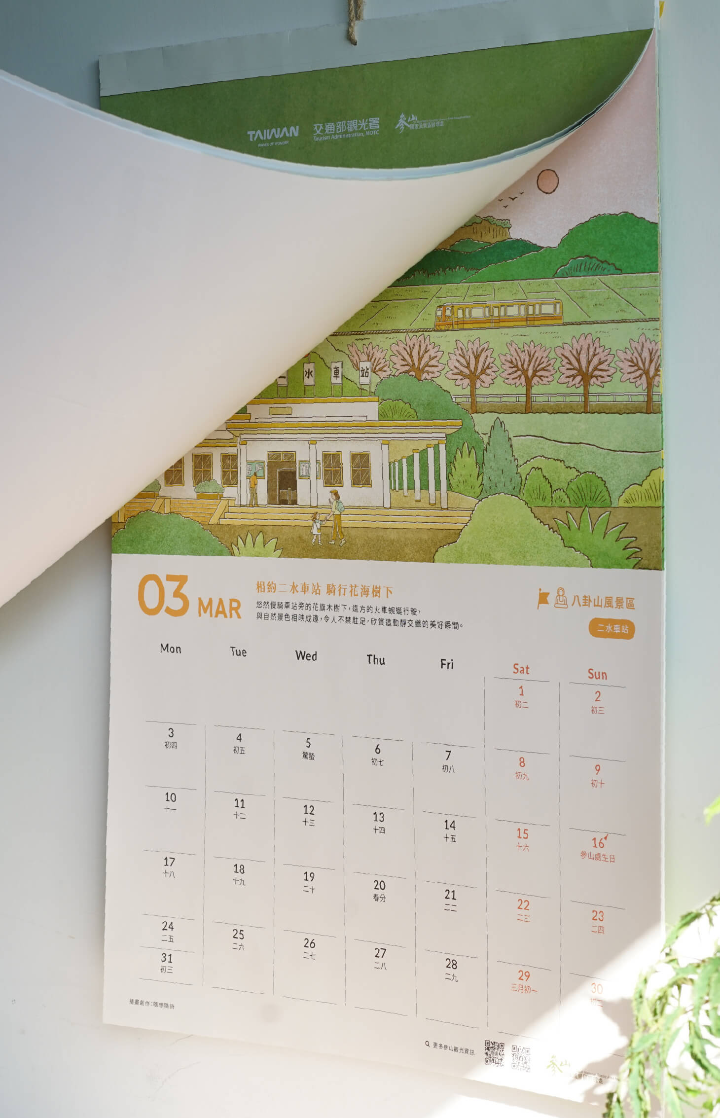我們將月曆視為一種慢速的閱讀方式:每翻過一頁,就是一次抵達新的地方。從自然紋理到建築意象,再到地方故事的延展,整體視覺系統在時間軸上串起參山的人文、自然與旅遊想像,形成一幅持續展開的山林敘事。