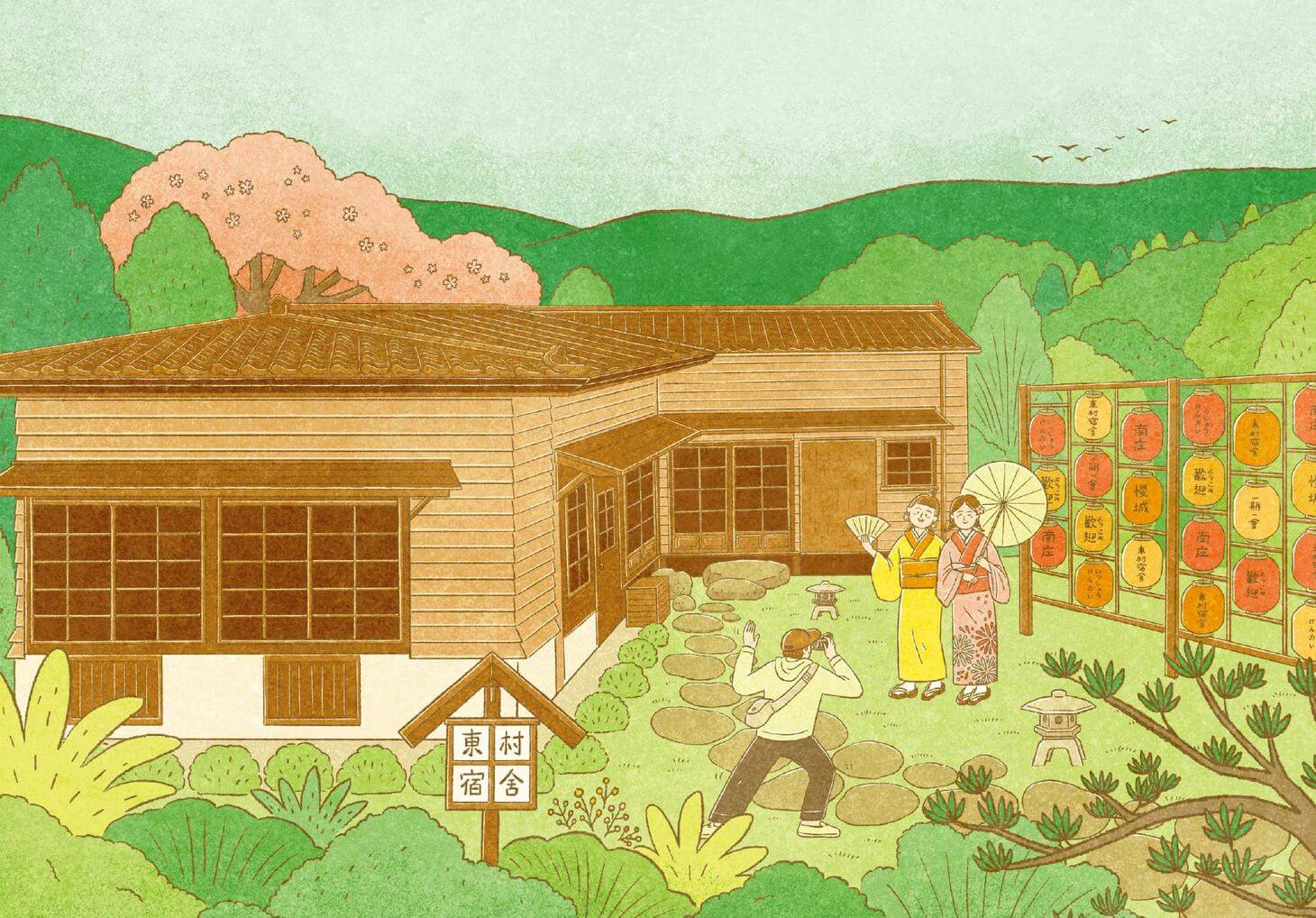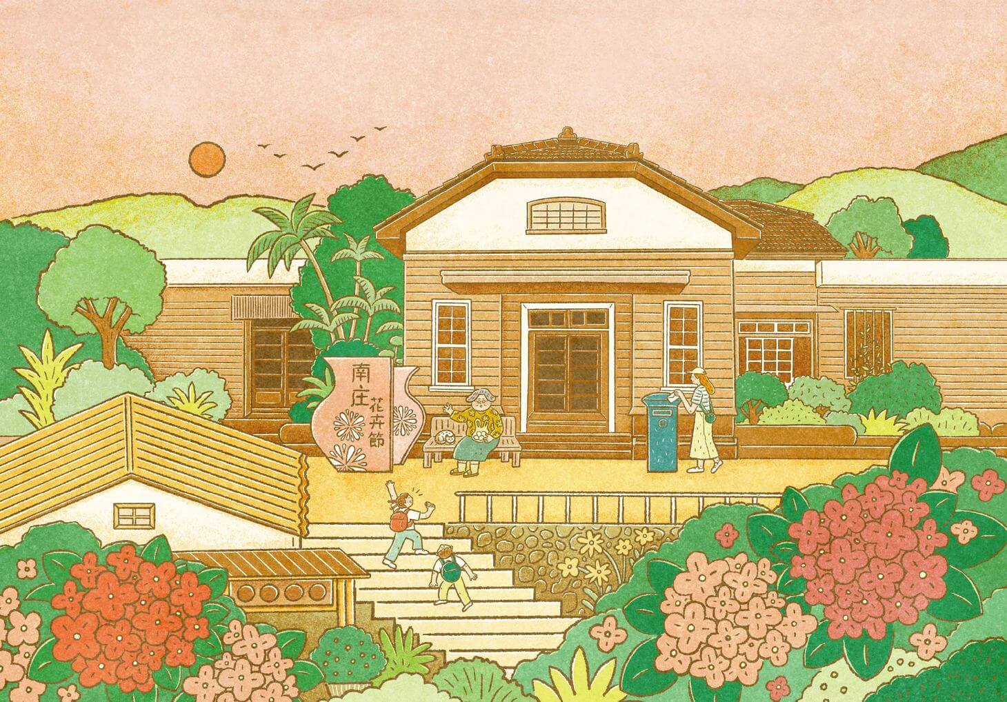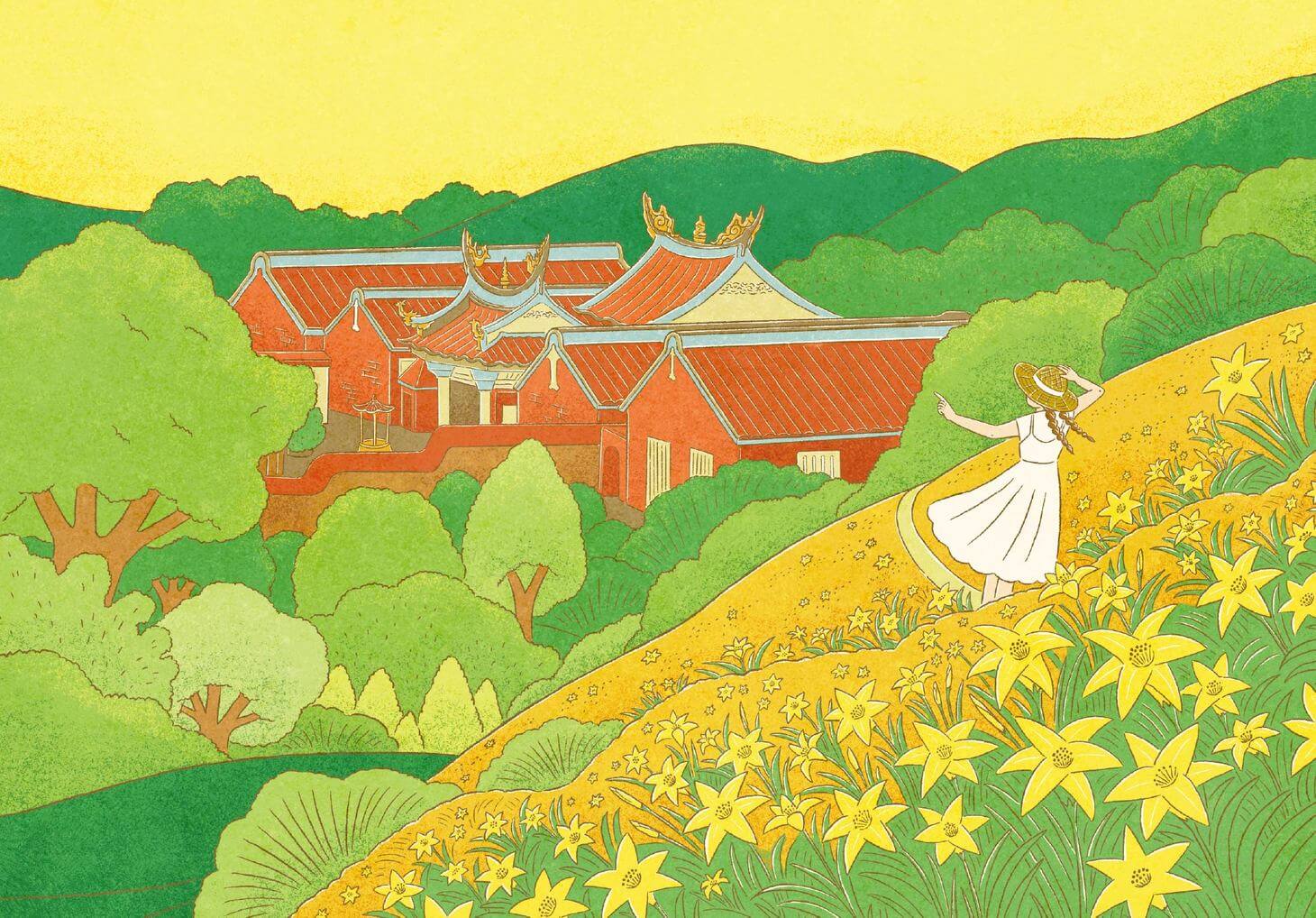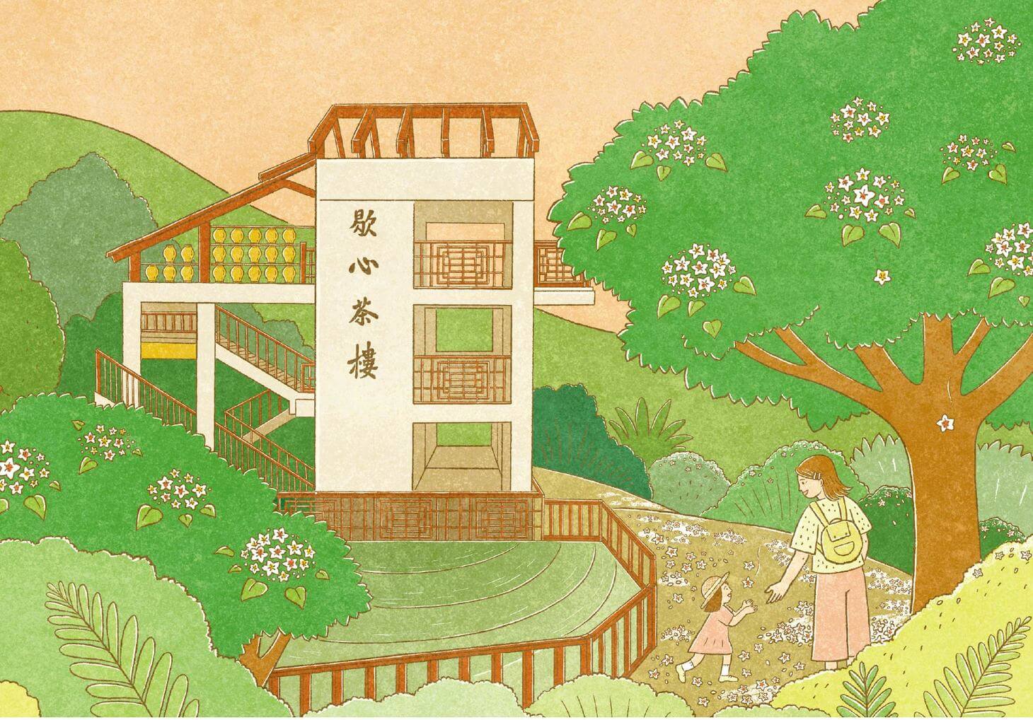 以插畫勾勒自然、建築與人物的三重關係