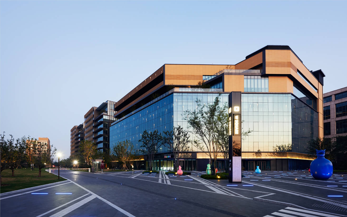 以精準比例與俐落幾何線條構築一個具有辨識度的園區語言。