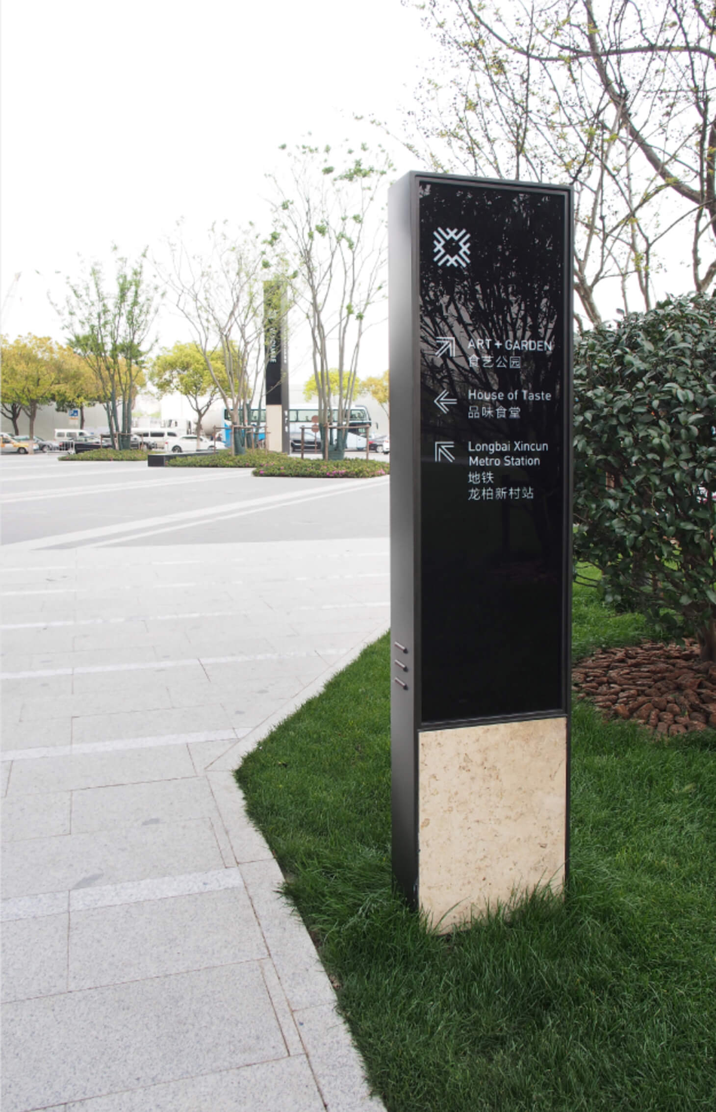 使標識與建築量體、綠意景觀自然共存,