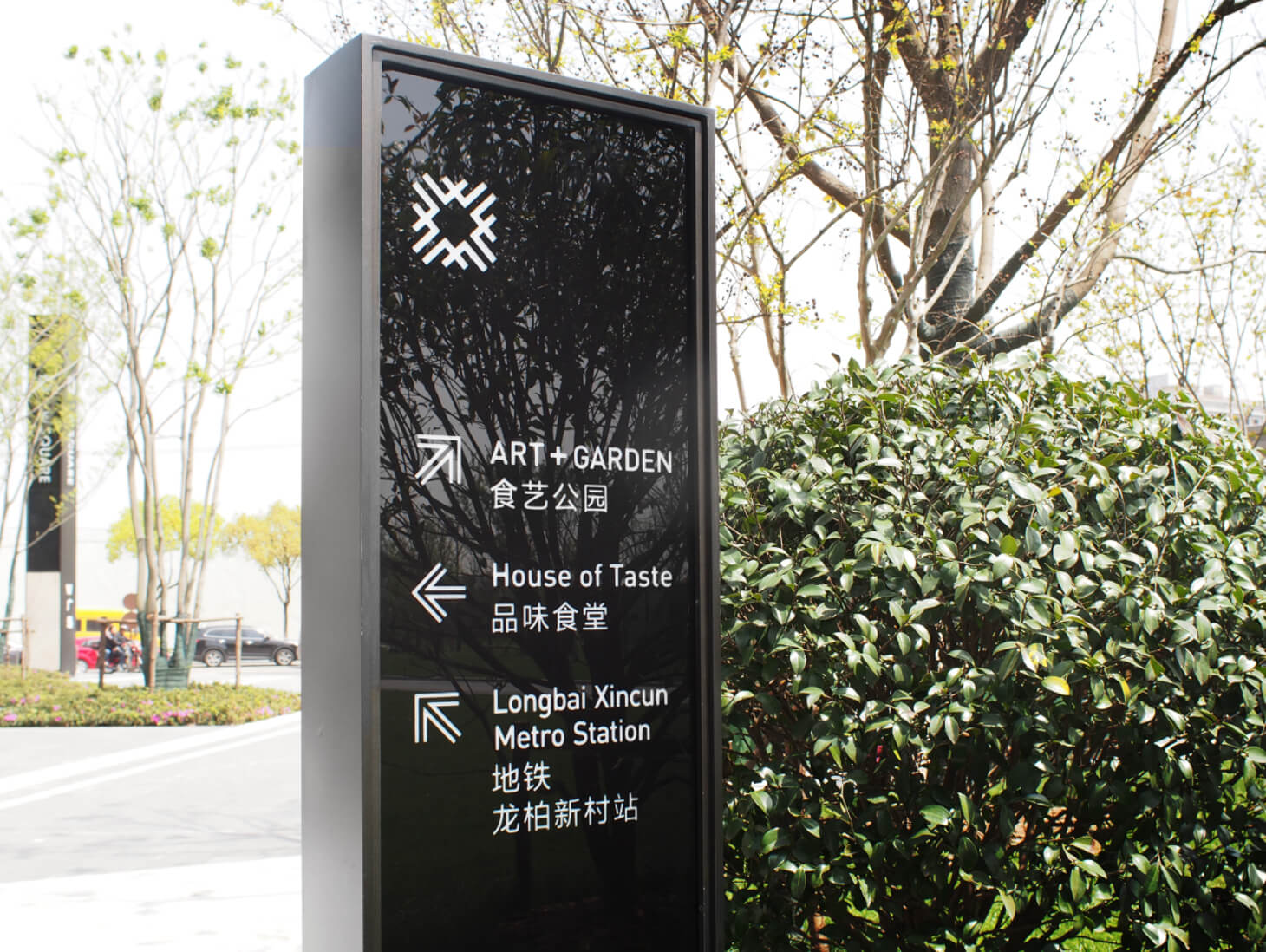 園區指標系統從概念到材質皆與環境相互融接。