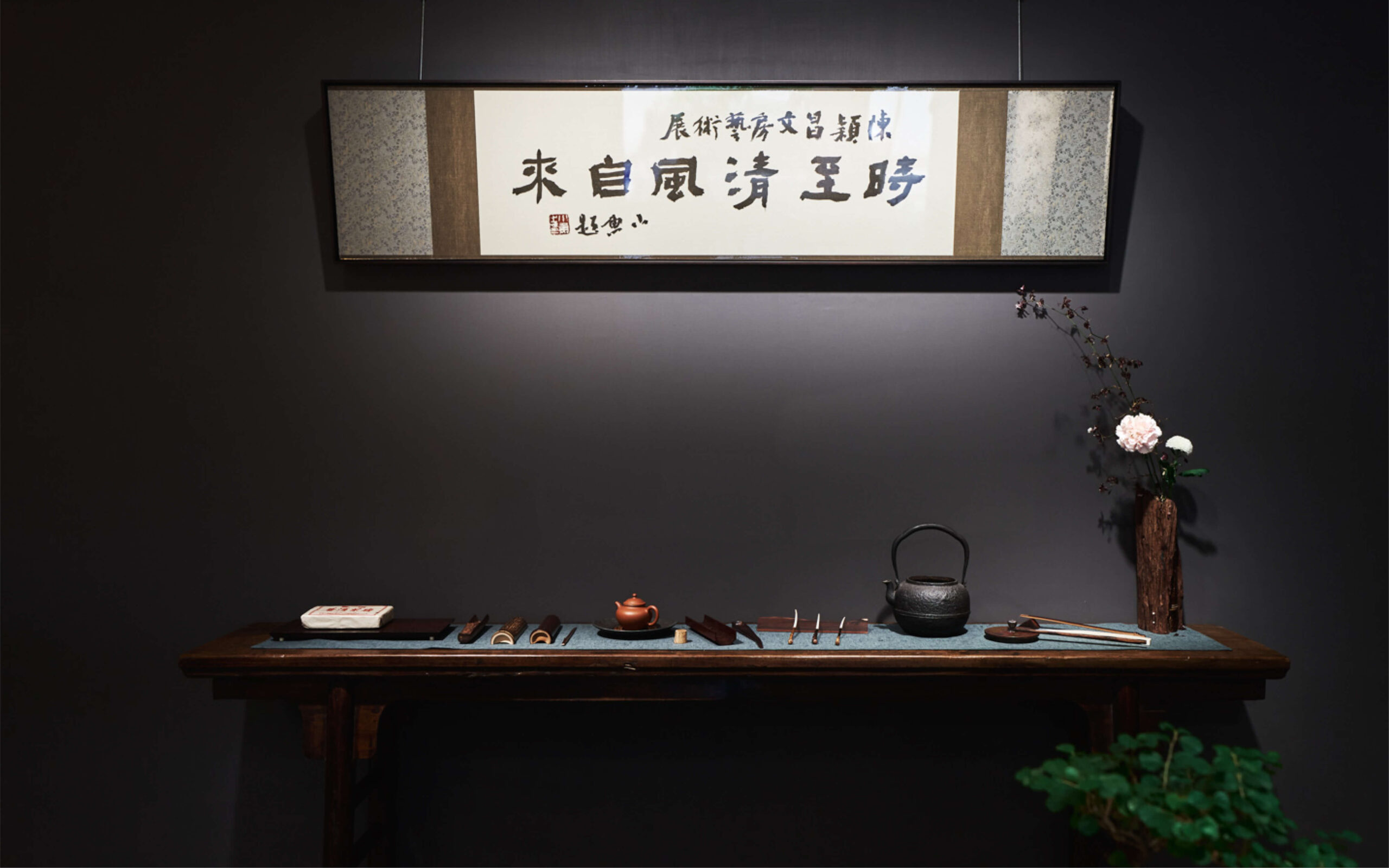 展覽主視覺以劉振祥攝影的《金風引》為核心,搭配小魚陳正隆的書法題字,形成影像與線條之間的靜謐張力。視覺語言既沉靜又有力量,為展覽定下文房藝術的氣韻基調。